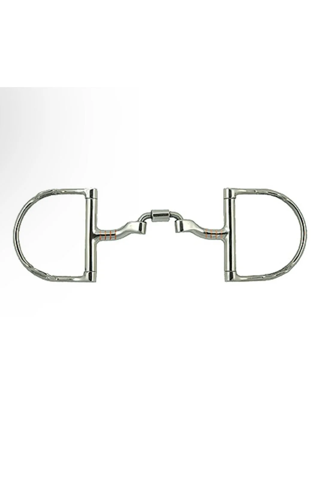Stainless steel Bit with looped dee rings and a 5" jointed copper inlaid ported barrel mouth.