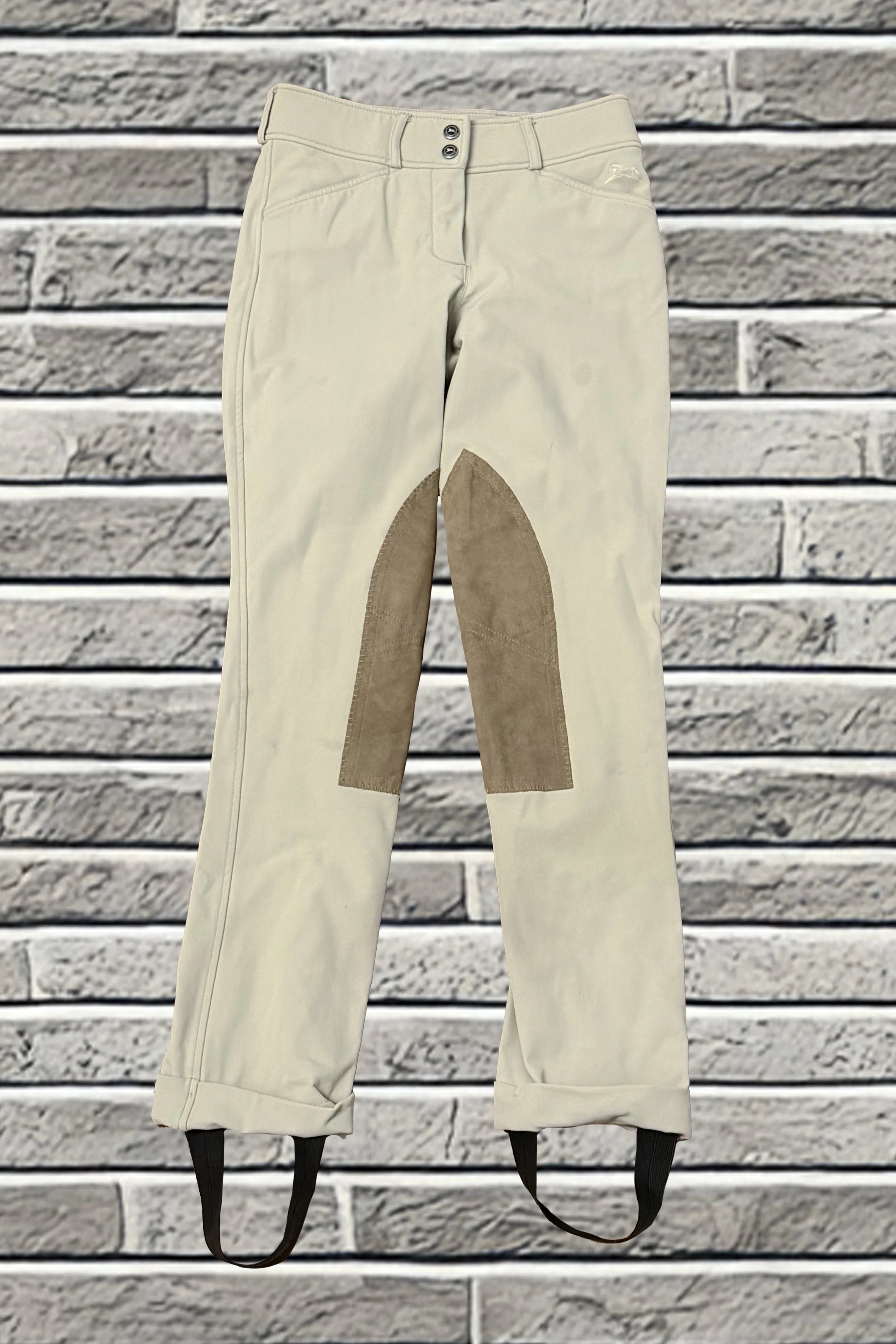Our Collette jodhpurs are prepared to take our youngest of riders to the top. Featuring a premium quick dry and stretch fabric which provides amazing hand-feel and coverage. Premium Clarino™ knee patches are naturally supple and breathable while presenting the elegant look of real suede, yet it can withstand intense abrasion. R.J. details on the front closures and pocket complete the design.