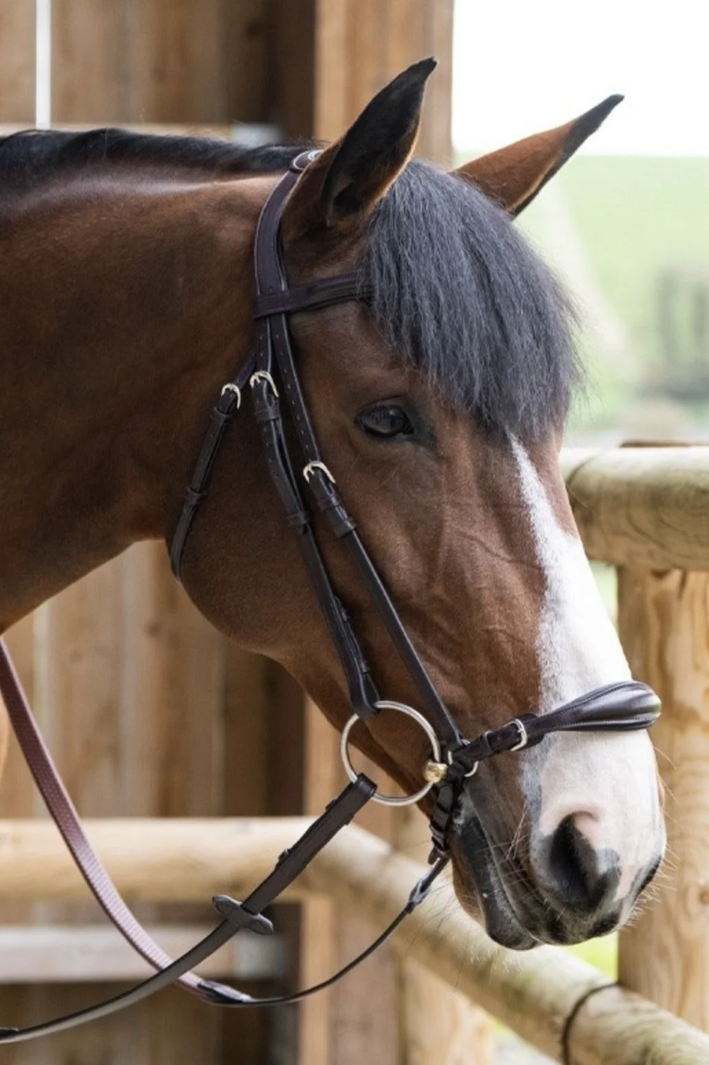 The noseband fastening features a small, discreet button, ensuring easy handling and a clean, elegant finish.