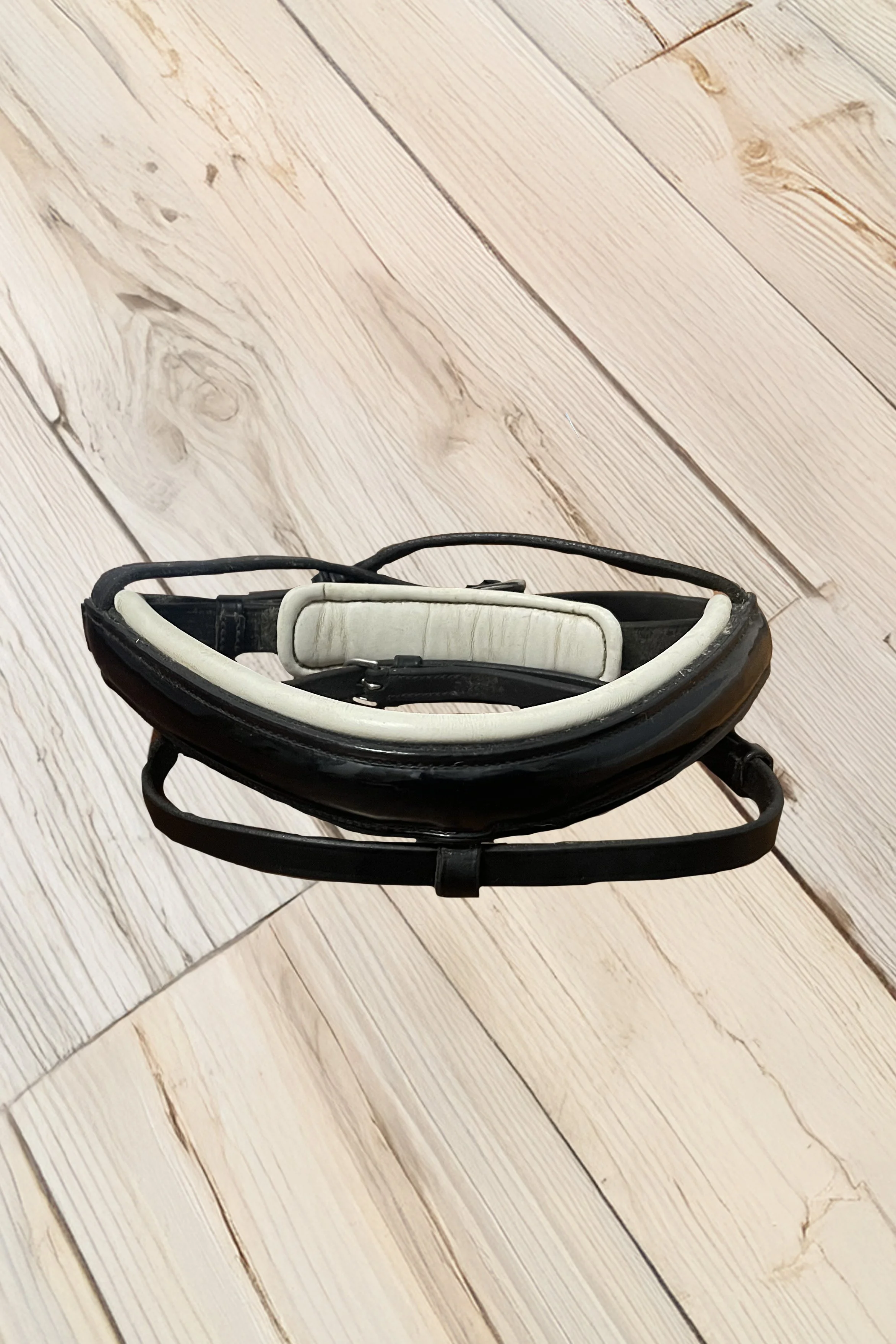 Crank Noseband With White Padding & Flash In Black - Size Full